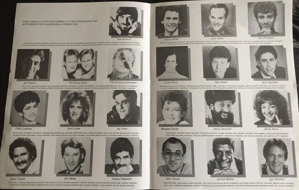 Spotlite’s roster in the late 1980s – a good sampling from a generation of extraordinary comedians! Click on photo for larger image.